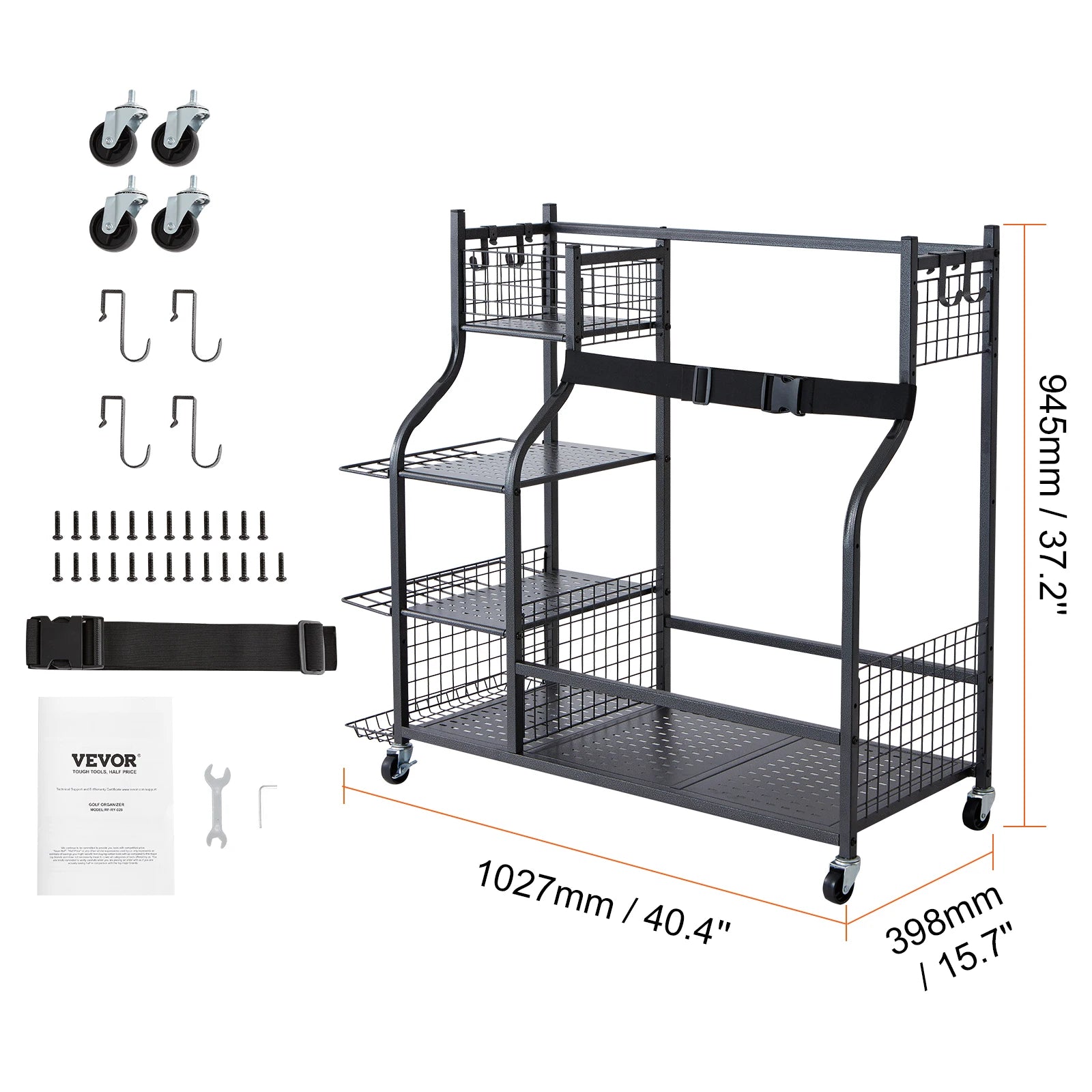feature 4: Golf Bag Storage Rack with Wheels for Garage, Club, Shed, Basement