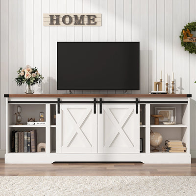 TV Stand Sliding Barn Doors Fits 60-75 In TV With Storage Cabinets