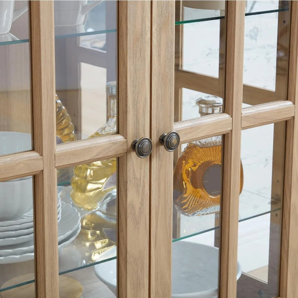Premium Construction for Durability & Elegance - Constructed with high-quality glass and MDF, this cabinet boasts durability while maintaining a sophisticated look. The elegant metal embossed handles and acrylic back panel not only add visual appeal but also ensure long-lasting strength, making it a reliable storage solution for your home or office.Natural Wood Grain - Unique grain variations enhance character, offering a warm, high-end look.