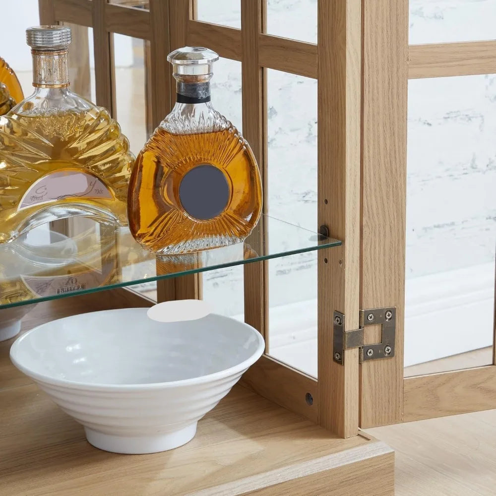 Integrated Lighting for Enhanced Display - Featuring a built-in light bulb, this cabinet adds a warm, inviting glow to your displayed items. Whether showcasing books, fine spirits, or collectibles, the integrated lighting makes your treasured possessions stand out, creating a stunning display in your living room, office, or dining area.