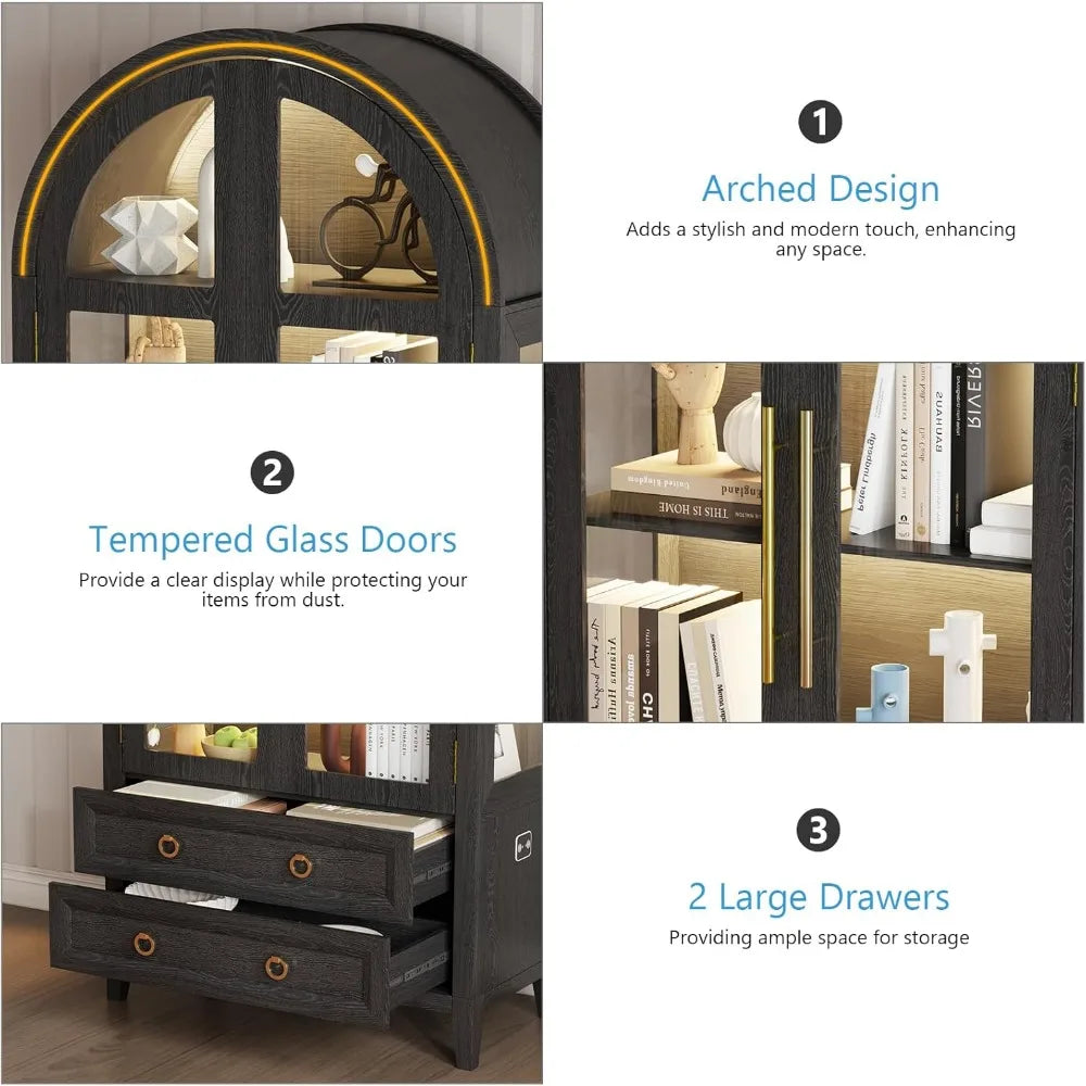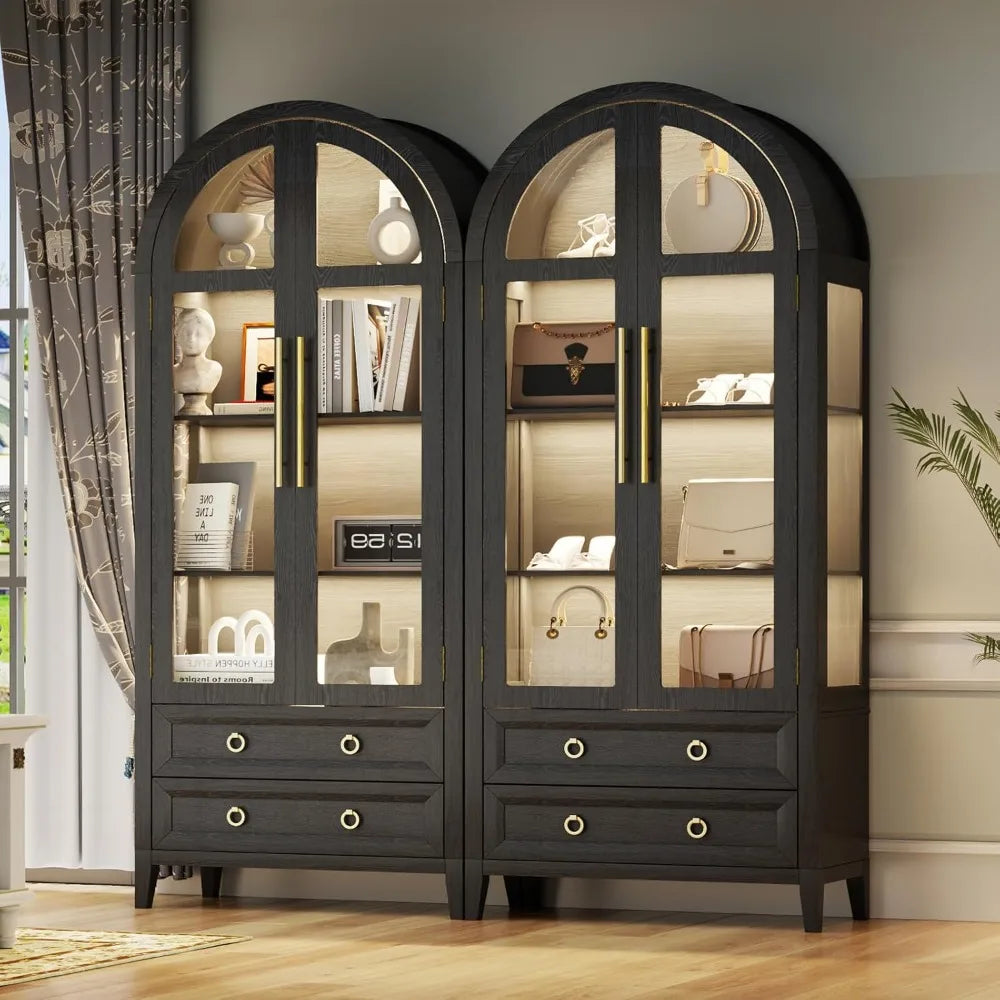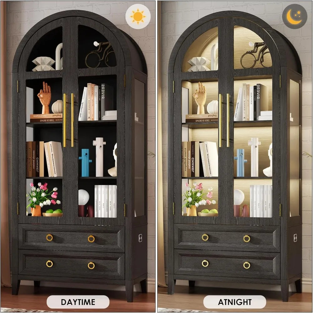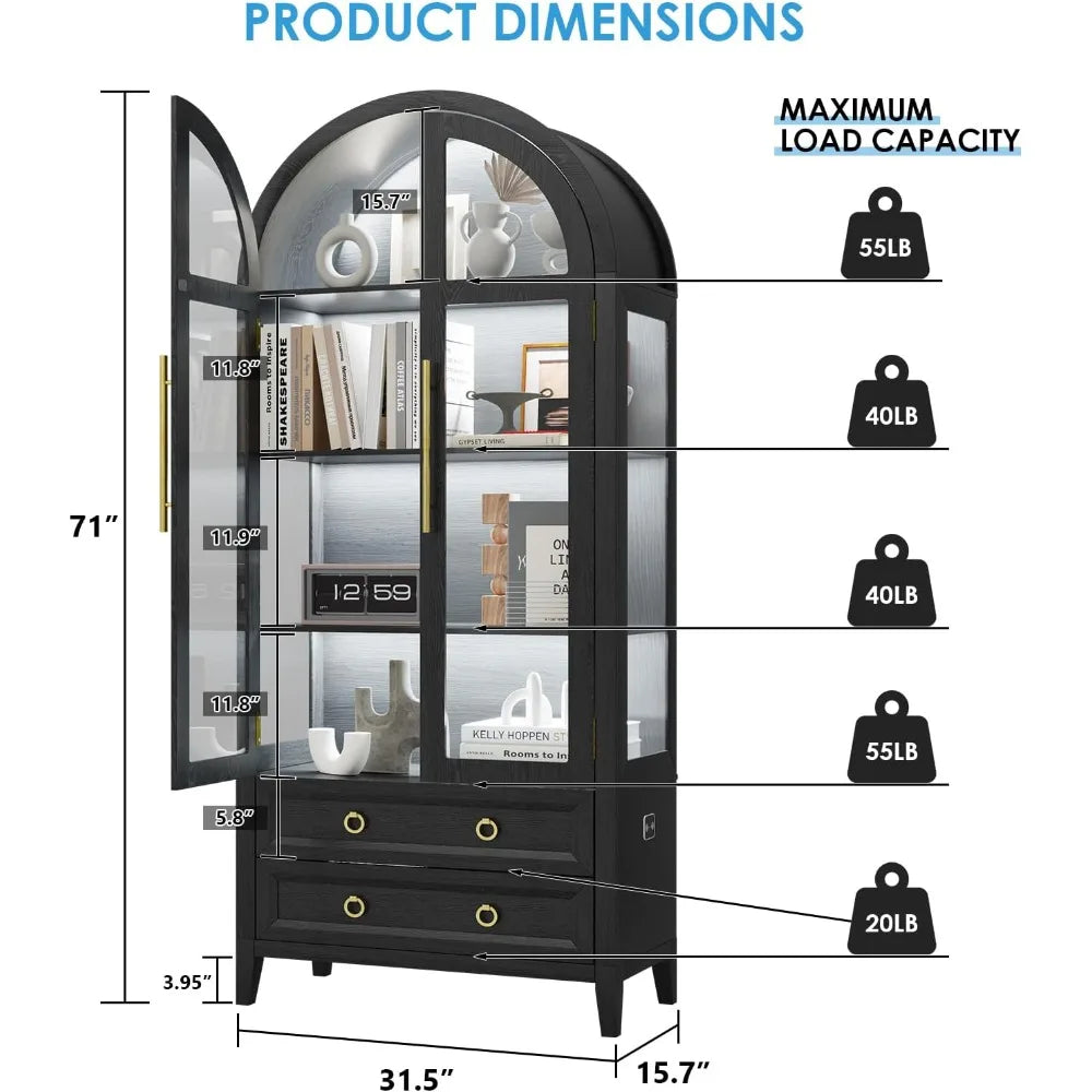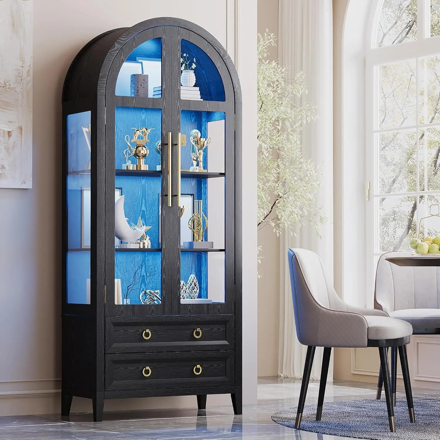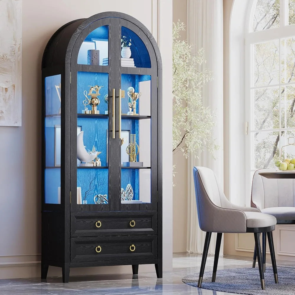 71" Arched Display Cabinet with Glass Doors, With 3 Color Lights