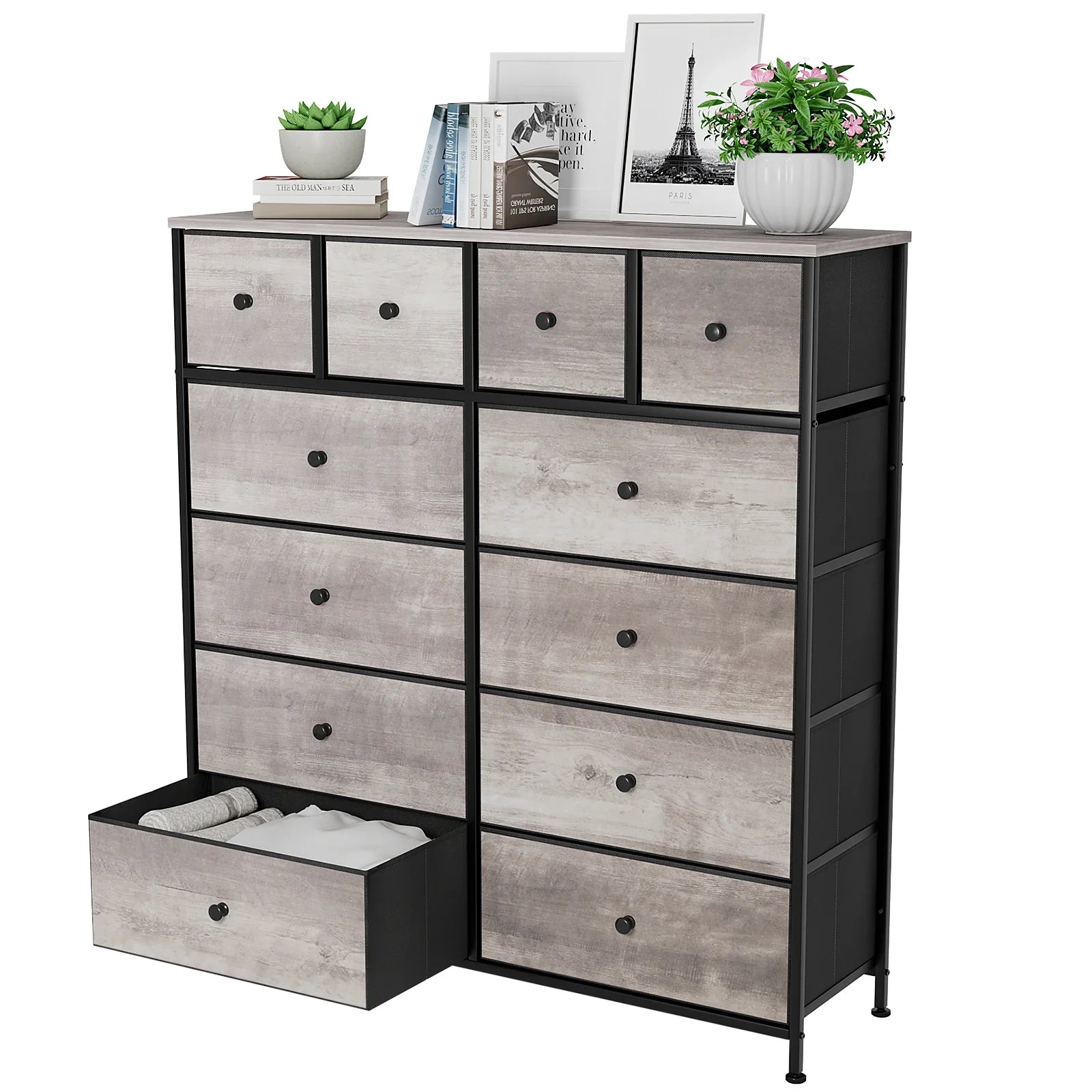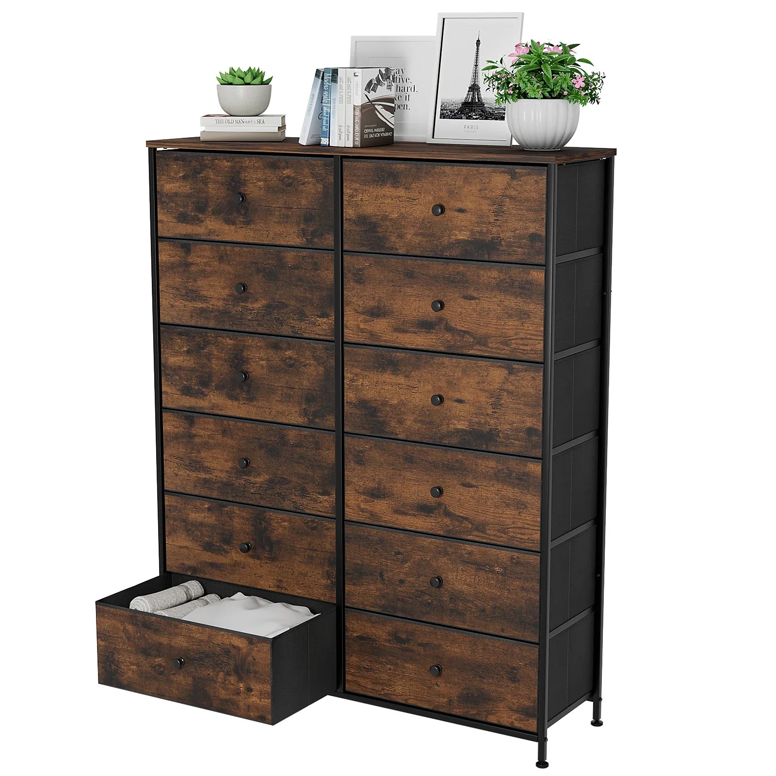 LARGE STORAGE SPACE 12-Drawer dresser wooden top can hold various daily necessities, such as: alarm clock, vase, desk lamp, photo frame, glasses, etc. Design of multiple drawers provides more space and more choices for storage. Tall dresser can store clothes, pants, socks, toys, books, thin blankets and other items as needed to keep your room tidy. In addition, it has an easy-to-pull ball handle, which opens and closes smoothly while being beautiful.