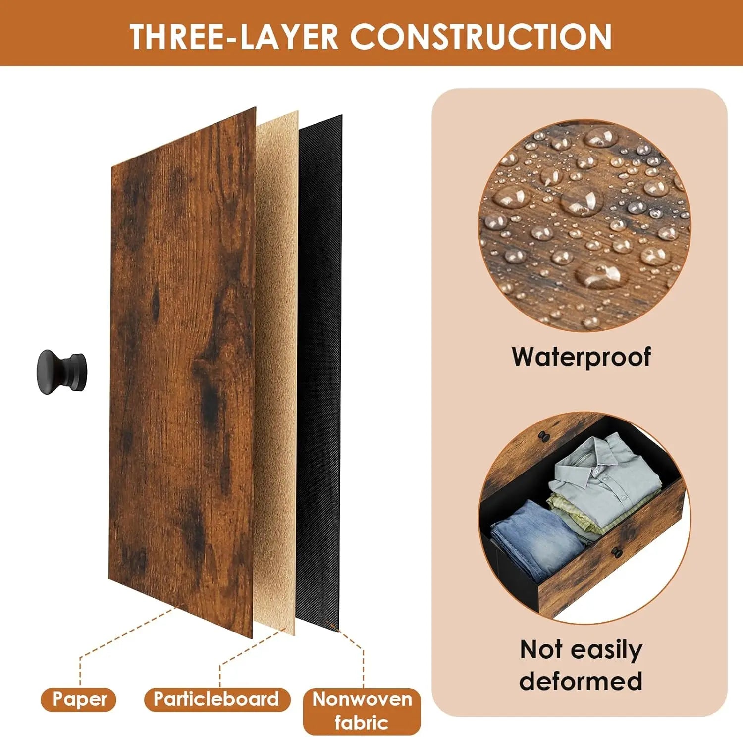 MULTIPURPOSE Drawer dresser's modern style and color design make it suitable for living room, bedroom, hallway, entryway, closet, dorm room, nursery, game room, office and other environments. Gray and rustic colors are matched with the wooden tabletop of the same color to highlight the fashionable atmosphere.