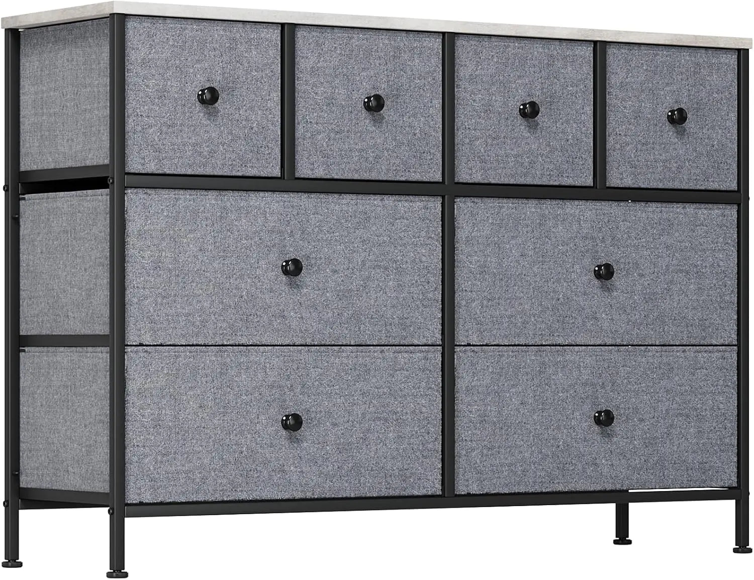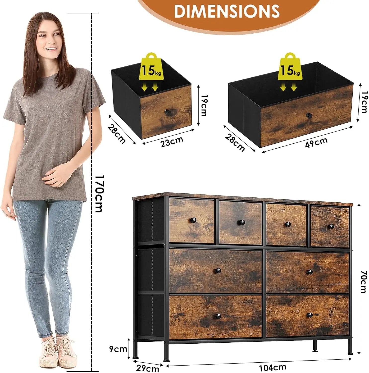 Chest of Drawers with 8/12 Fabric Drawers, Wooden Top, Metal Frame, Suitable for Bedroom, Living Room, Children's Room, Office, Hallway, Entryway