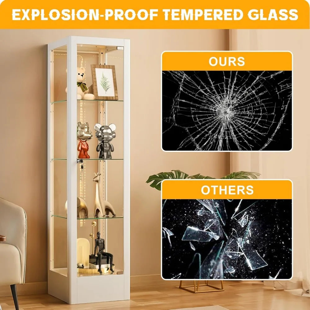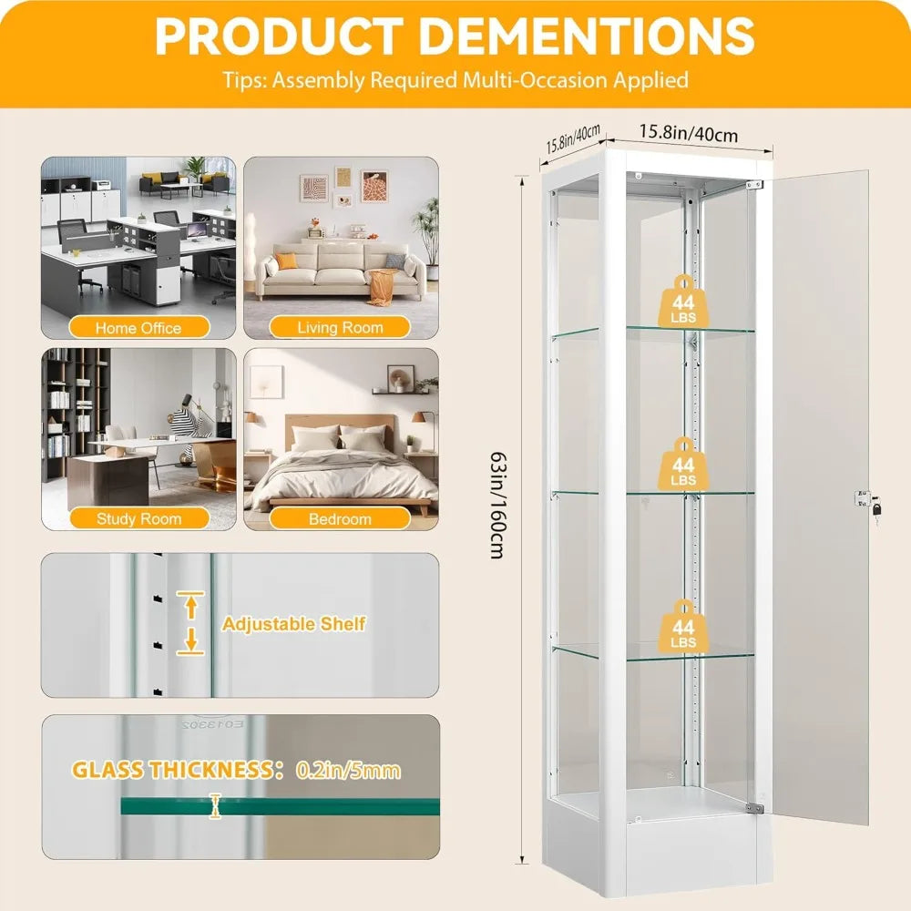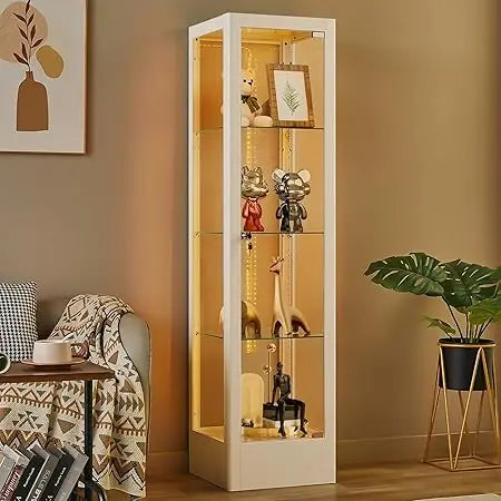 Spacious & Adjustable Shelving With 4 tiers of display space, including 3 adjustable shelves, this glass display cases for collectibles offers versatile storage options. Customize the shelf heights to accommodate items like figures, china, trophies, or antiques, maximizing both functionality and visual appeal.