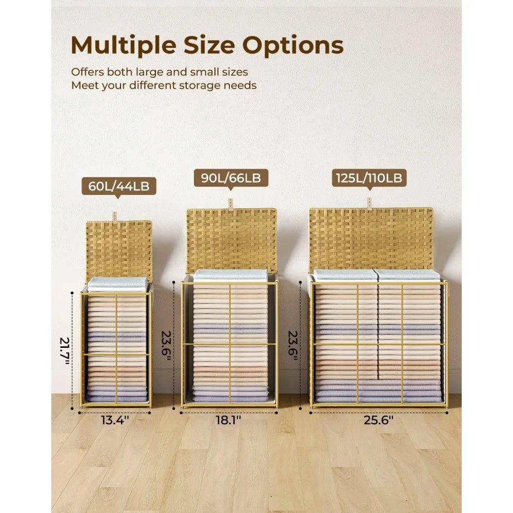 Laundry Hamper with Lid, 90L Clothes Hamper with 2 Removable Liner Bags & 2 Mesh Laundry Bags, Handwoven Synthetic Rattan Laundry Basket for Clothes, Toys in Bathroom, Bedroom Natural