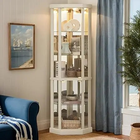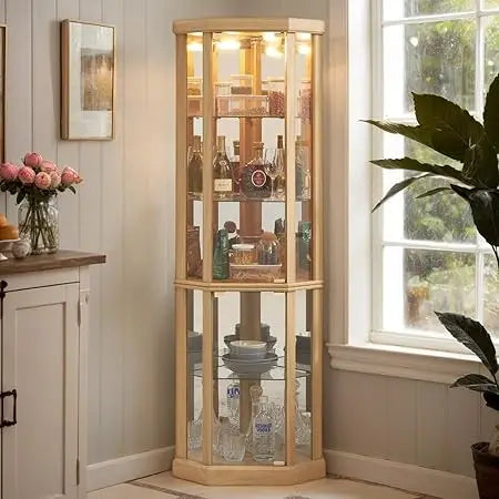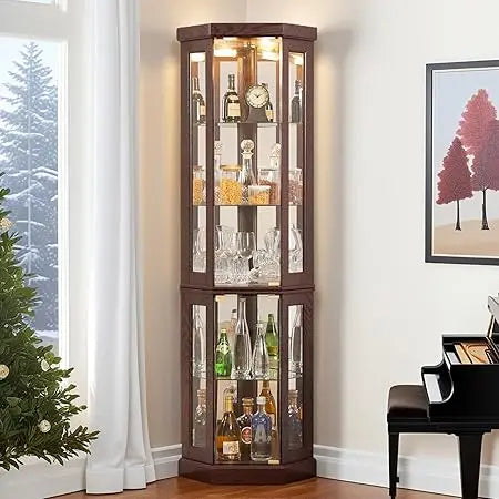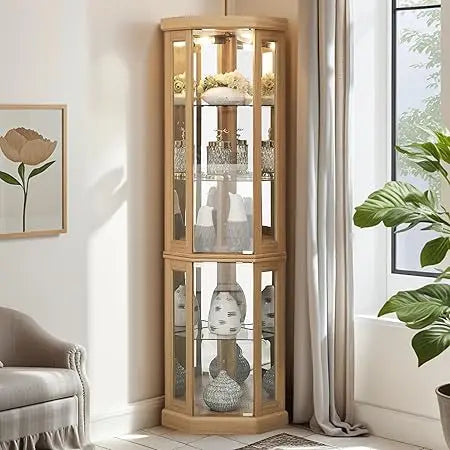 Perfect Size Made of high-quality solid wood, this corner curio cabinet has a slim and space-saving shape. Tucks neatly into a corner, allowing you to organize collectibles while leaving room for other furniture.