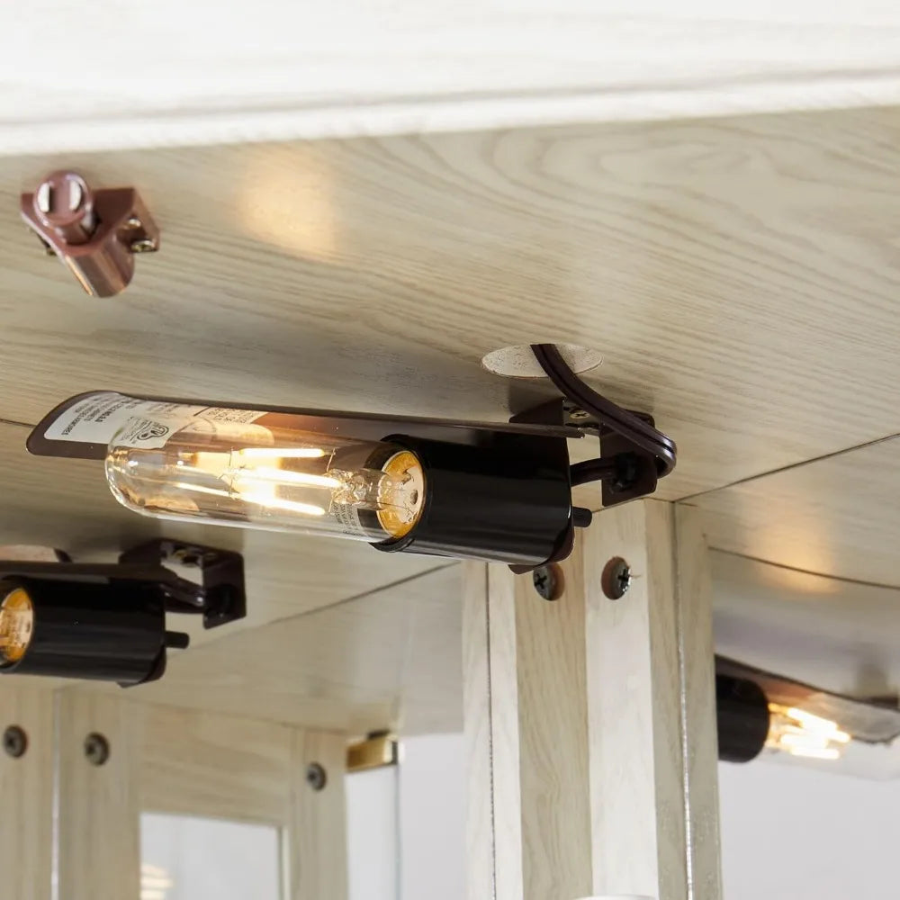 Strong & Durable Constructed from high-quality manufactured wood, this cabinet has an overall weight capacity of 125 pounds. Each shelf can hold up to 25 pounds. Glass pane doors close securely with magnetic catches.