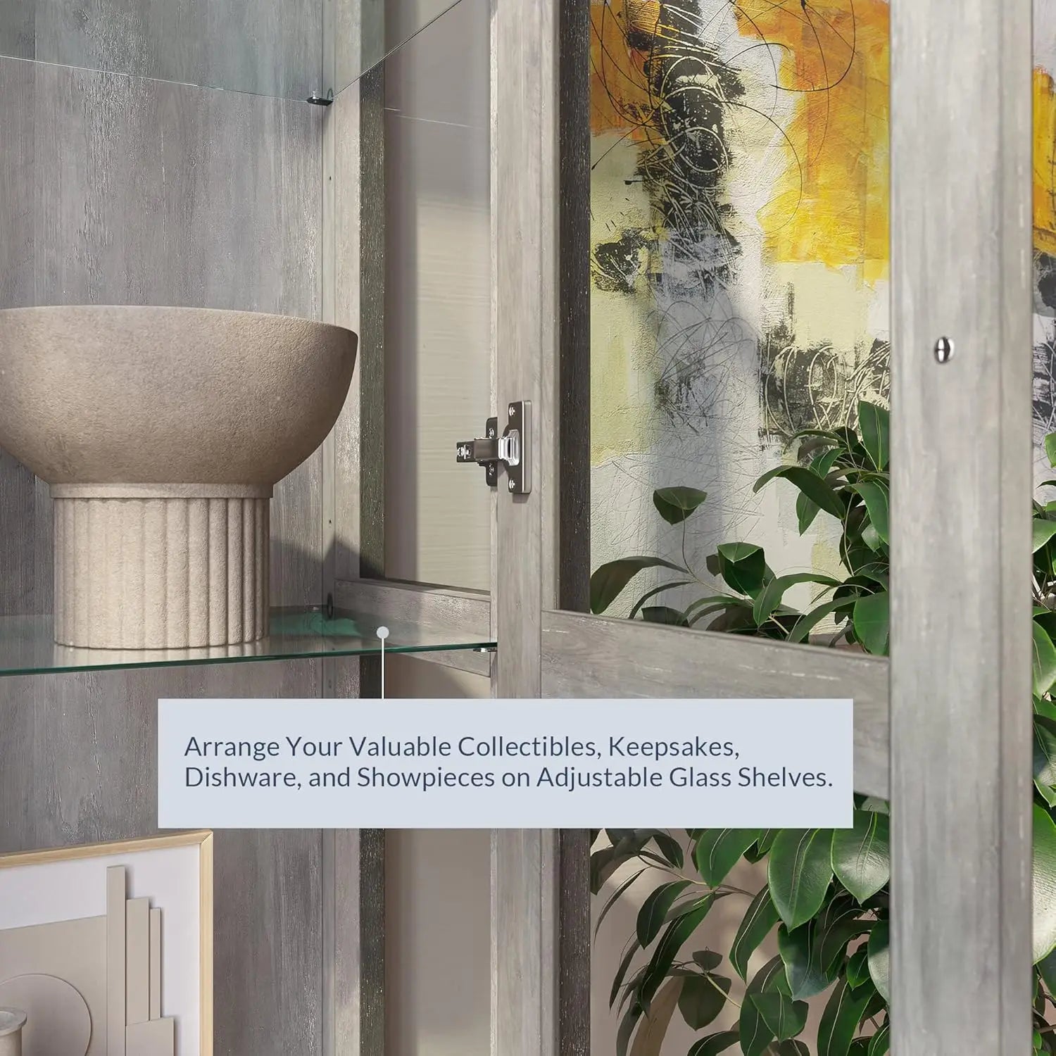 Elegant Glass Display Cabinet in Gray Wash Finish